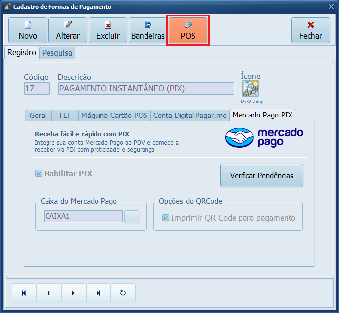 34- Clique na aba Máquina Cartão POS. Logo depois, marque a opção Habilitar POS.