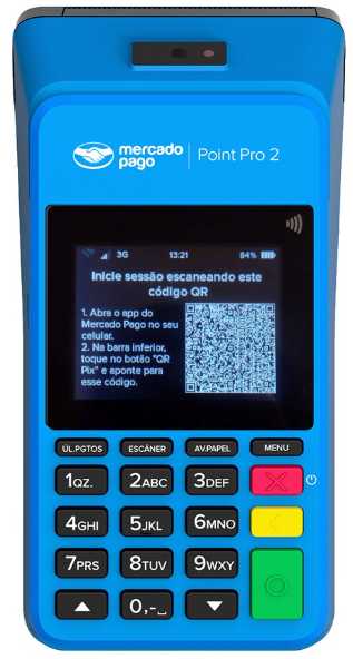 6- Na sua Maquininha POS aparecerá um QRcode para ser escaneado. Para isso, abra o Aplicativo do Mercado Pago em seu celular.