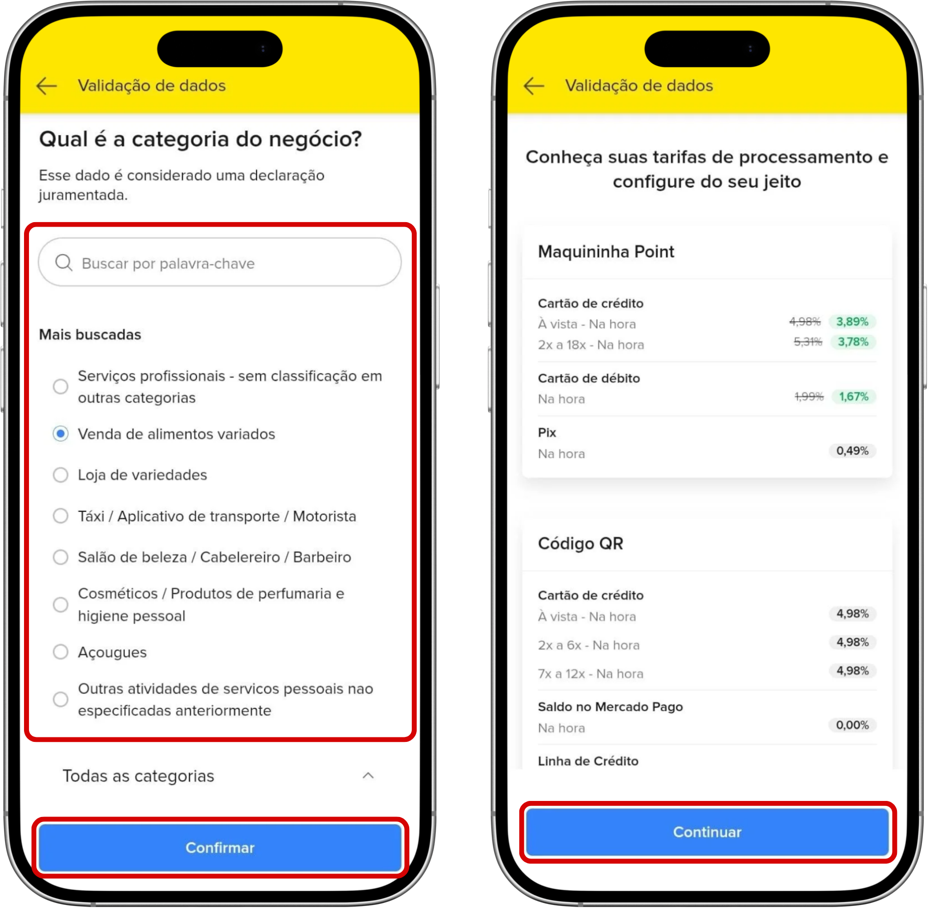 9- Selecione a categoria do seu negócio > Continuar. Em seguida, toque em Continuar novamente para prosseguir.
