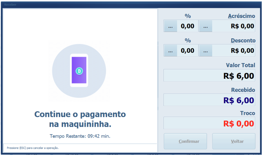 Pronto, o sistema irá confirmar automaticamente o pagamento e finalizar a venda.