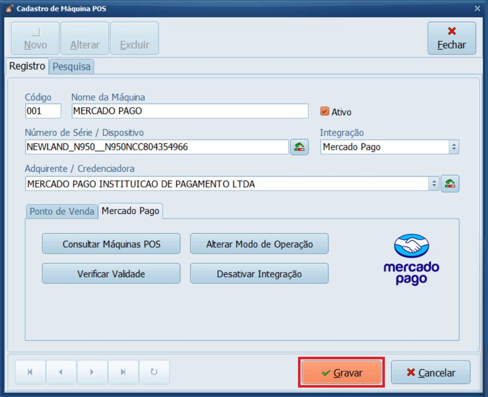 27- Selecione a opção Apenas Integrado ao PDV > Gravar.