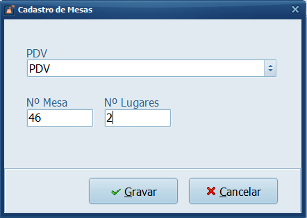 4- Coloque o Número da Mesa e o Número de Lugares.