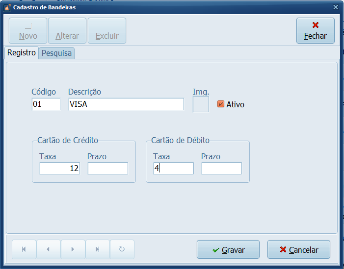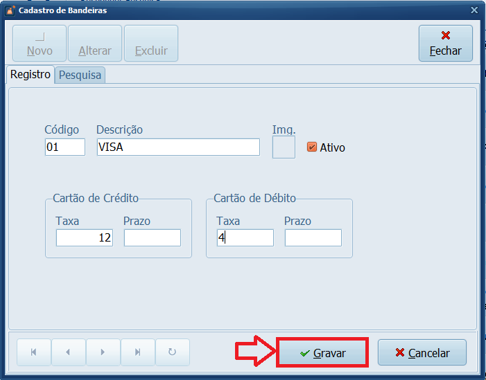 Pronto! Você cadastrou a taxa em uma bandeira no Sistema, realize o mesmo processo para outras bandeiras caso utilize em seu estabelecimento.