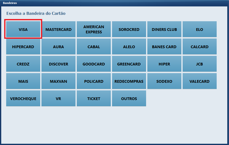 Ao finalizar uma venda, selecionando a forma de pagamento Cartão poderá escolher a bandeira.