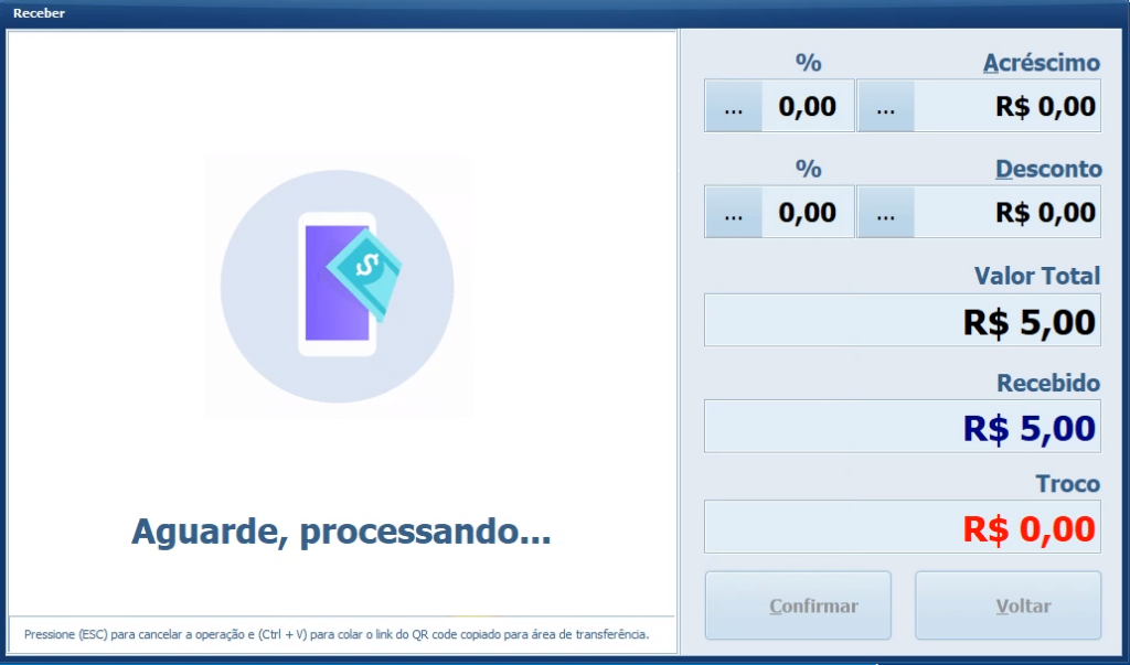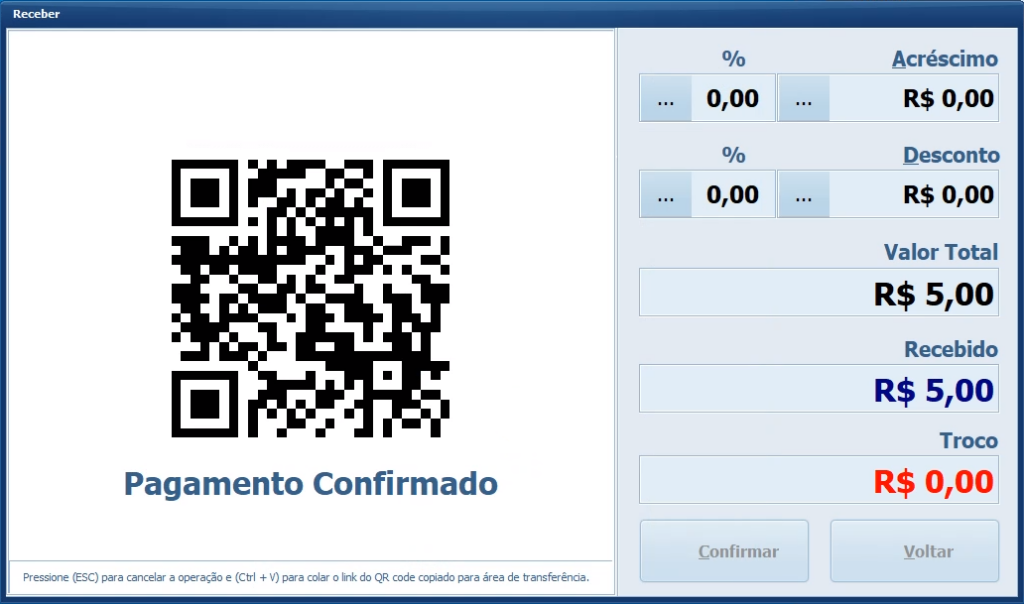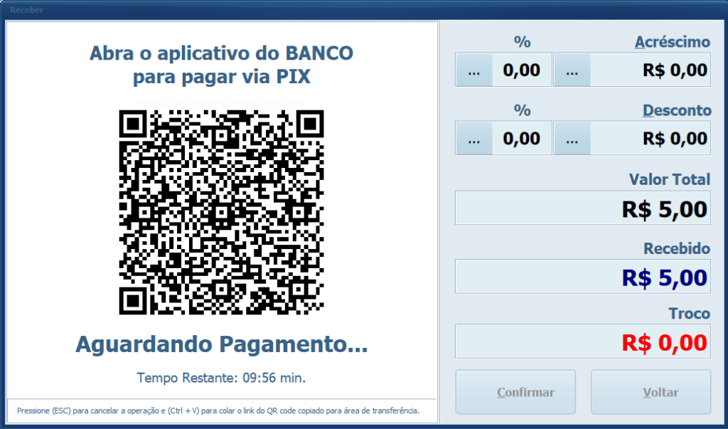 Tudo pronto! Agora ao escolher a forma de pagamento PIX durante a venda, será gerado um QR Code para que o pagamento possa ser realizado. Veja como funciona abaixo: