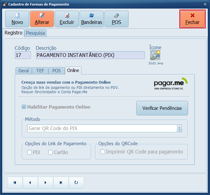 Neste tutorial, vamos guiá-lo passo a passo pelo processo de configuração do Pagamento Online do Pagar.me com a opção de gerar um QR Code do PIX ou um Link de Pagamento diretamente no sistema Datacaixa PDV.