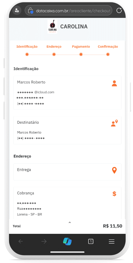 Pronto! Agora, ao escanear o QR Code, o cliente será direcionado ao link no navegador do celular, onde poderá realizar o pagamento via PIX ou Cartão de Crédito.