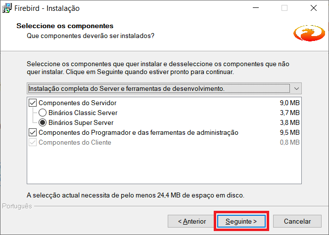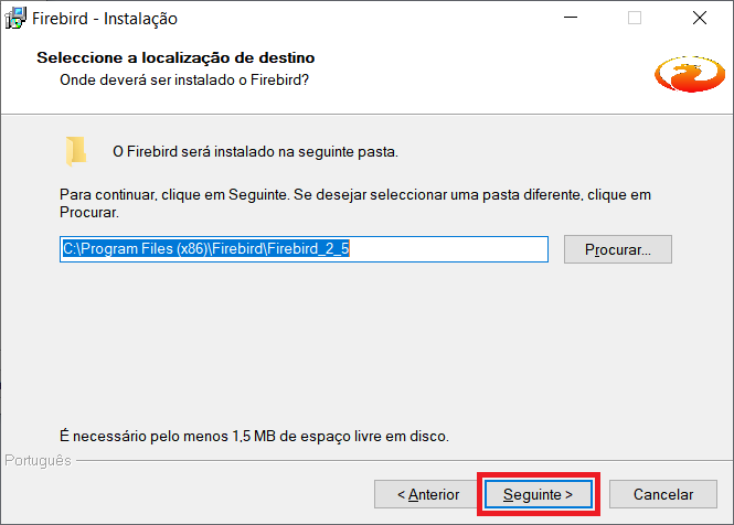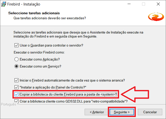 11- Marque o parâmetro Copiar a biblioteca do cliente Firebird para a pasta de <system>? e clique em Seguinte.