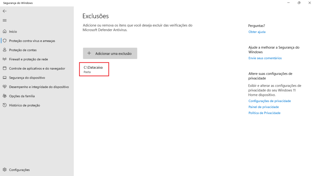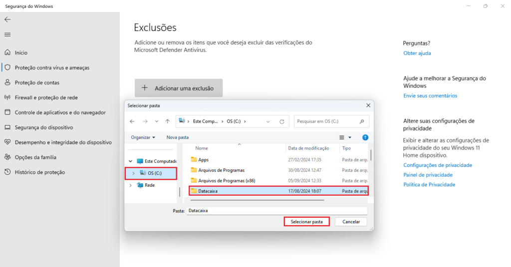 Pronto! Ao seguir esses passos, a Segurança do Windows não bloqueará mais os sistemas Datacaixa, permitindo que funcionem corretamente.
