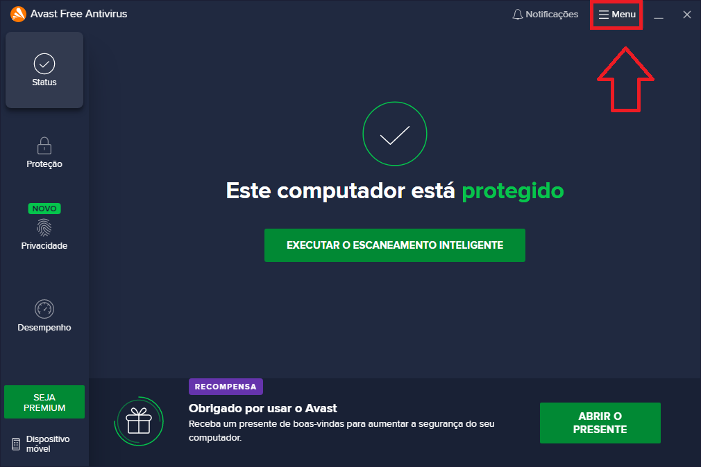 2- Clique em Menu.