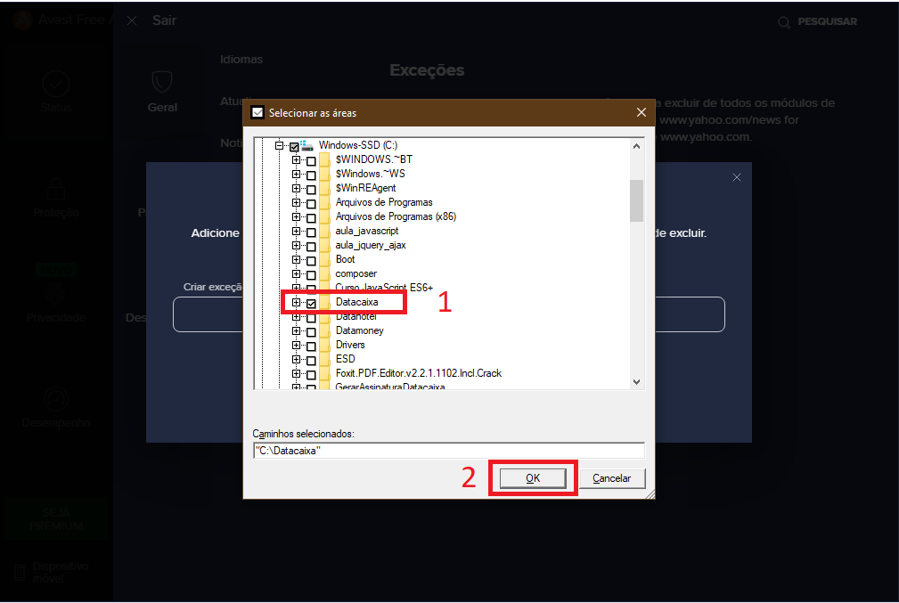 6- Selecione a pasta do Datacaixa e clique em OK.