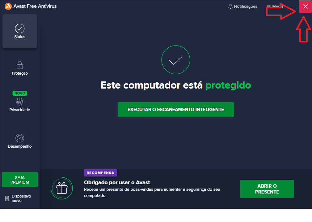9- Feche o Antivírus.