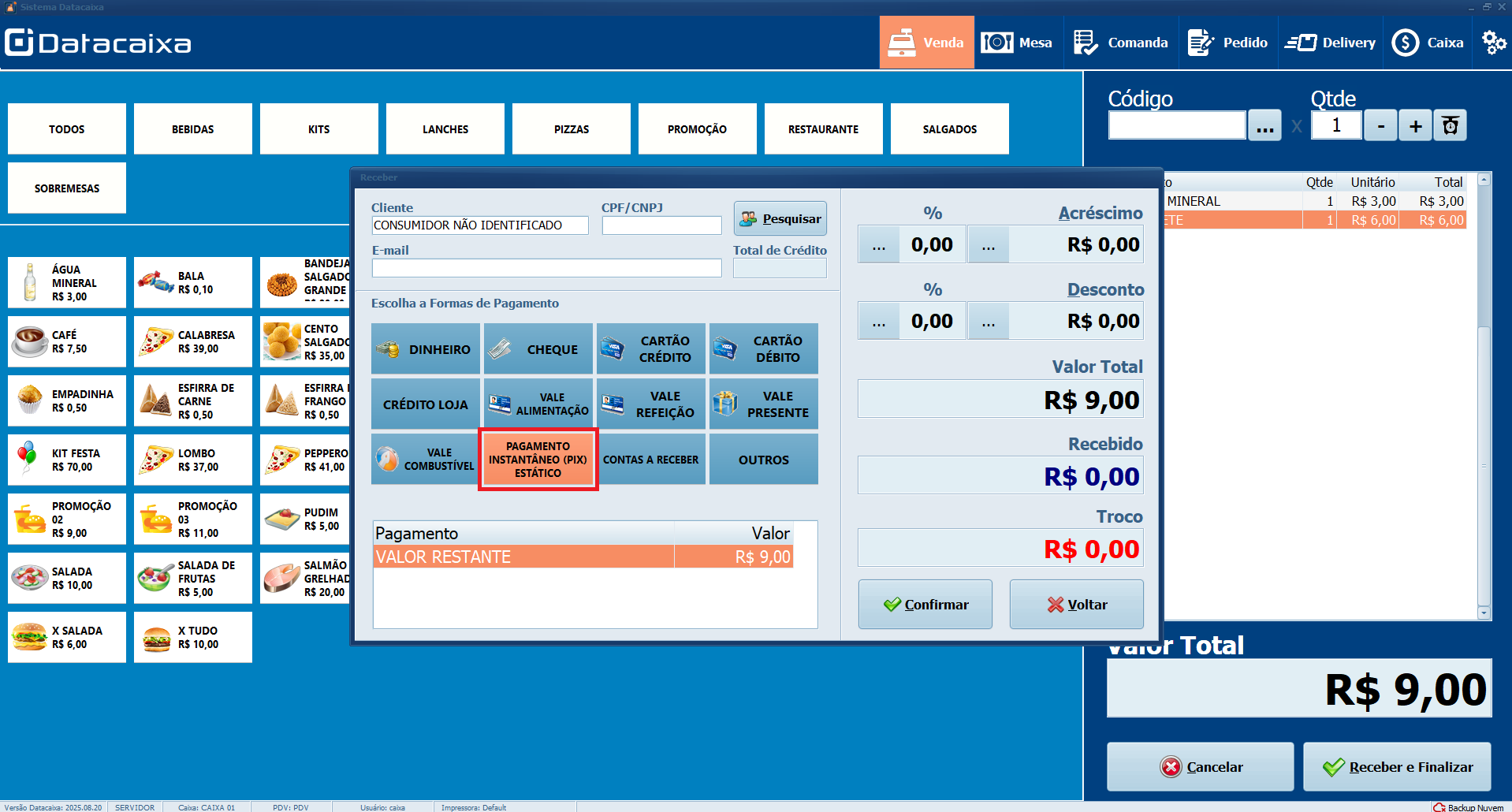 1- Atualizar o Datacaixa PDV para a versão 2025.08.20 ou superior.