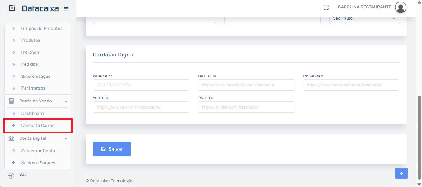 Tudo Pronto! Agora, ao realizar o login no site Datacaixa você poderá visualizar as informações das vendas e do caixa diretamente pela Área do Cliente.