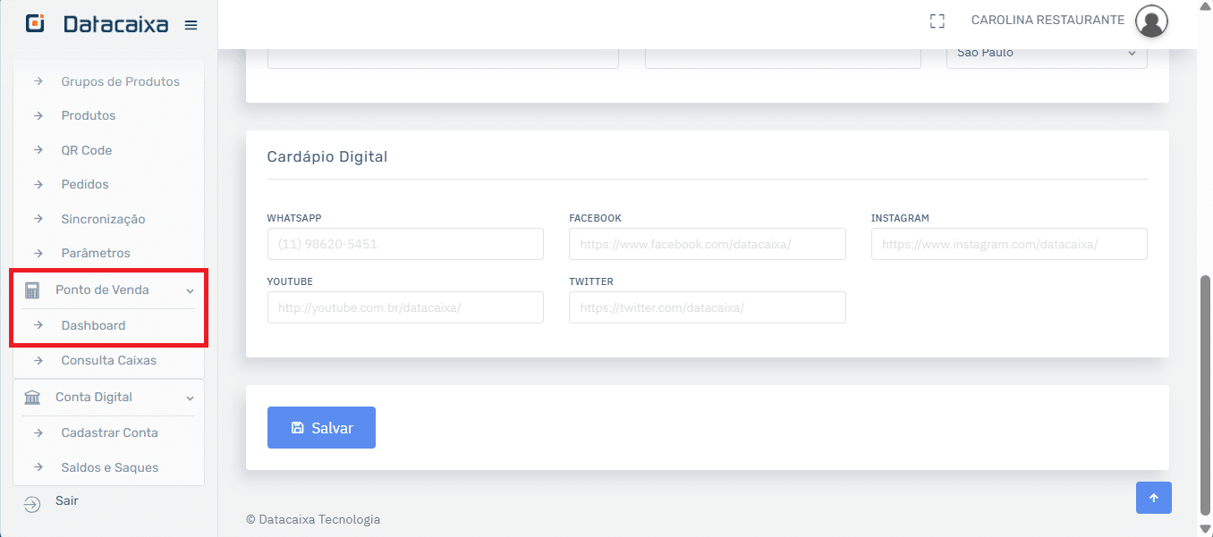 8- Em Ponto de Venda, clique em Dashboard.
