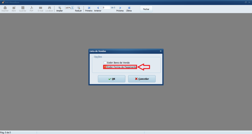 4– Habilite o parâmetro Exibir Forma de Pagamento e clique em OK.