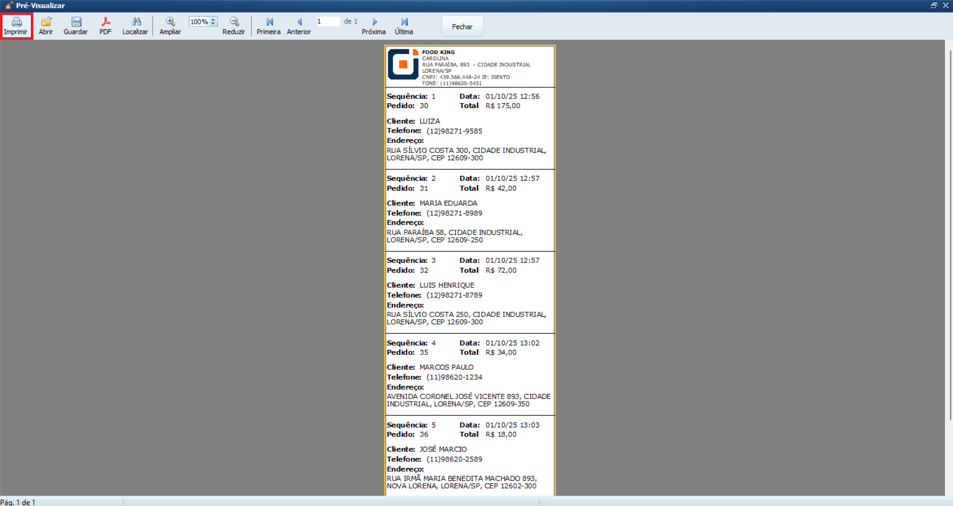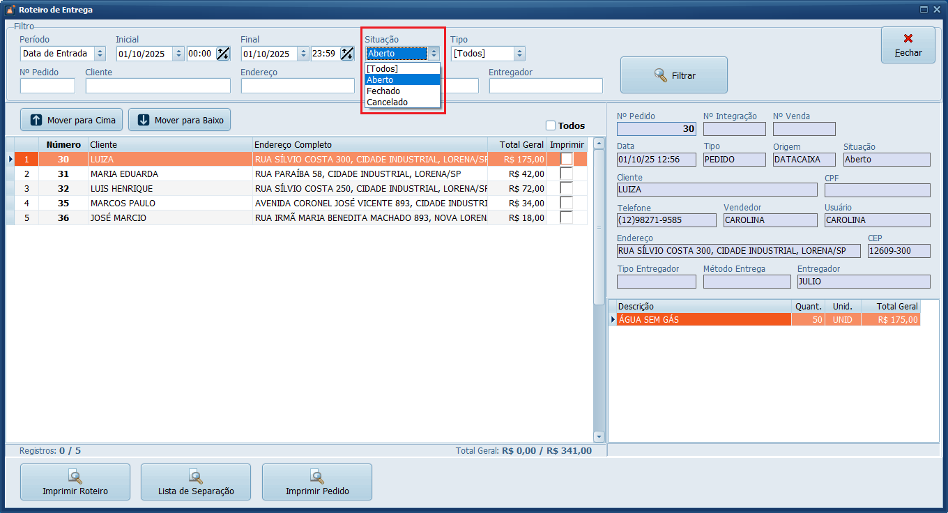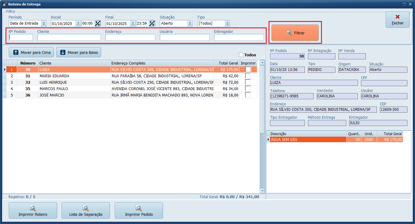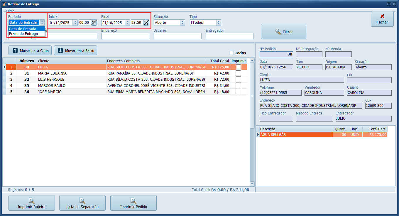 10- Clique em Imprimir para realizar a impressão do Roteiro de Entrega.