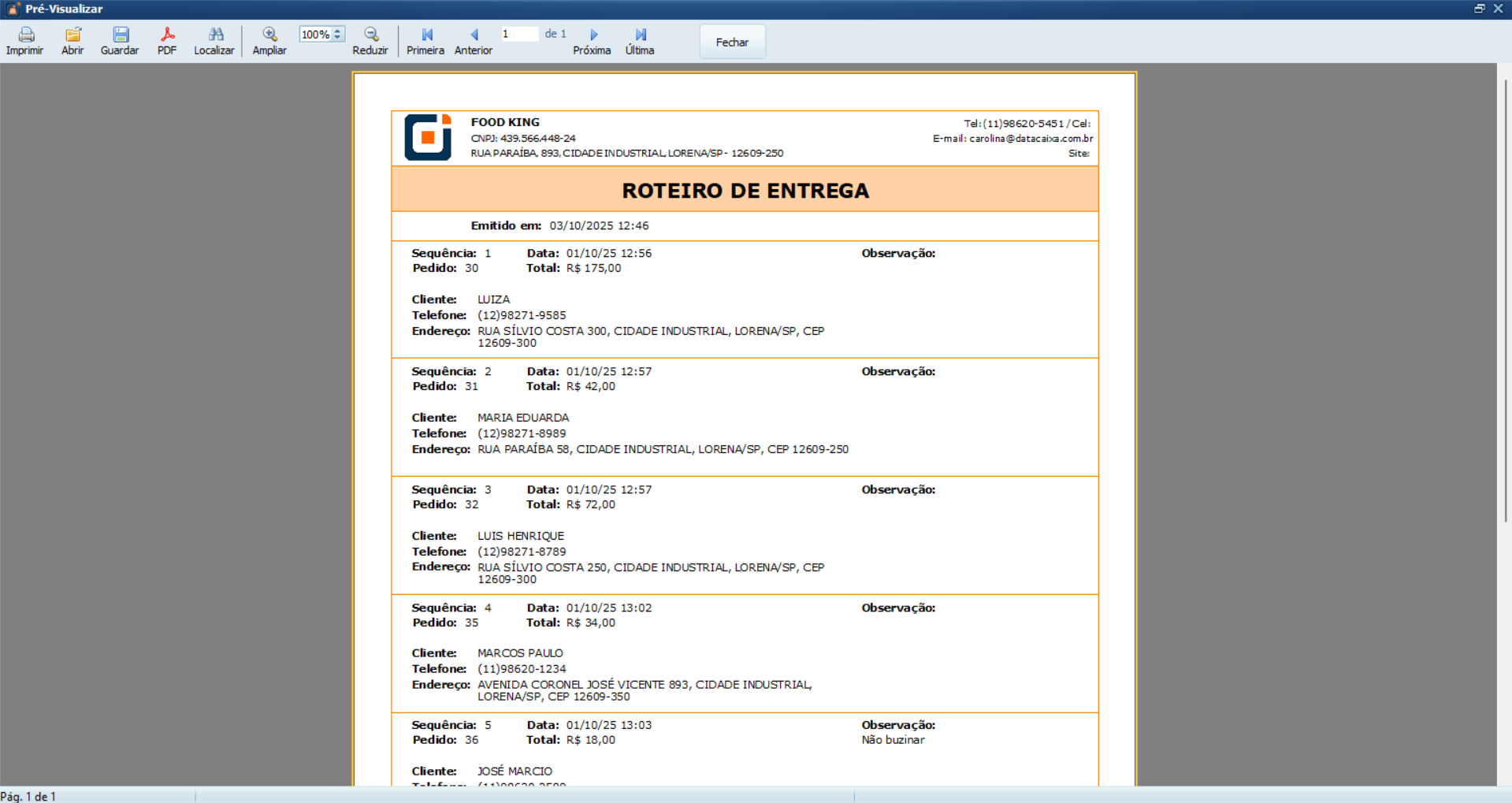 Pronto! Você gerou o relatório de Roteiro de Entrega em uma sequência otimizada para facilitar as entregas.