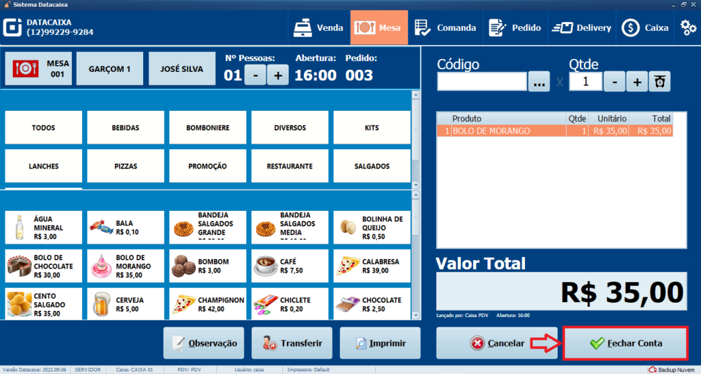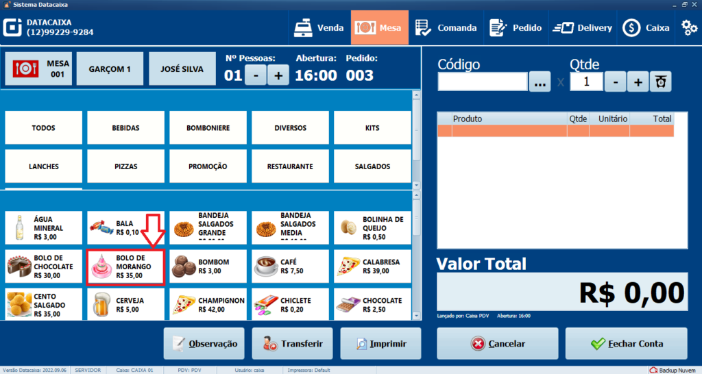 2- Clique na Mesa desejada.
