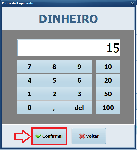 12– Informe o Valor e clique em Confirmar.