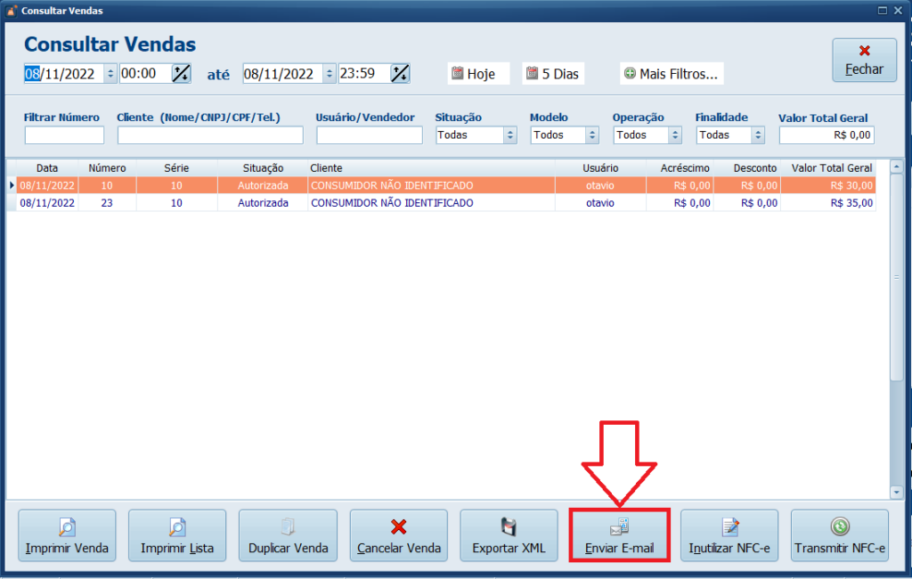 Pronto! Você enviou o XML de uma venda por e-mail no Sistema.