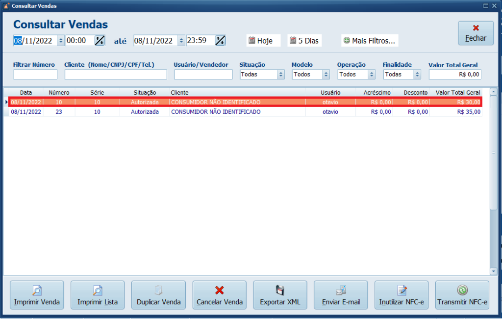 1- Acesse o Menu Gerencial e clique em Consultar Vendas.