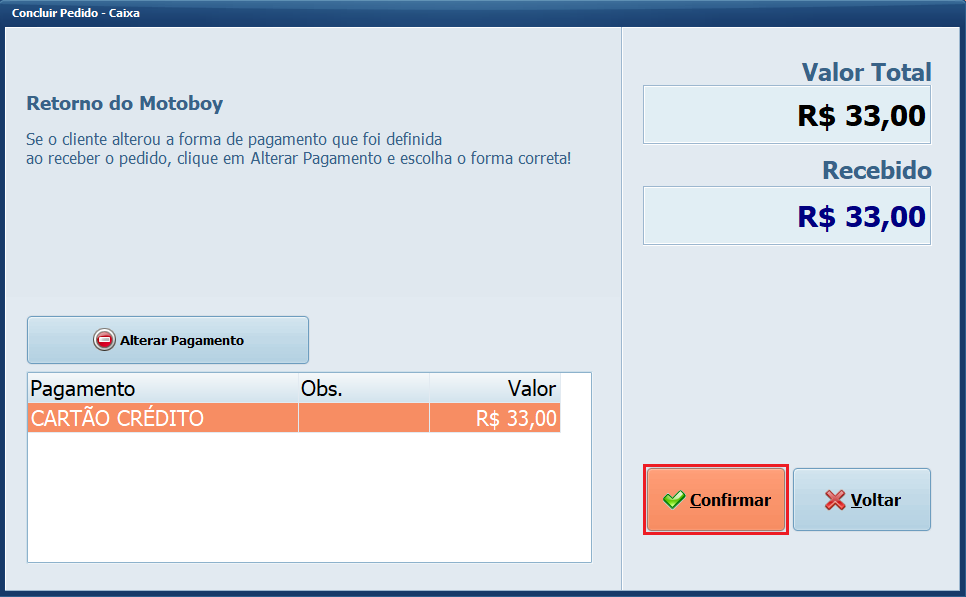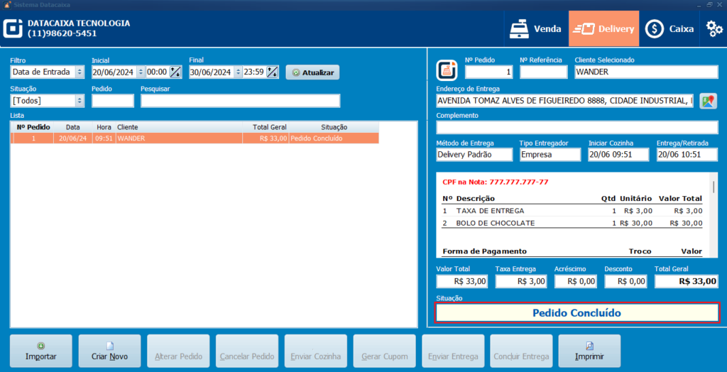 27- Situação Pedido Concluído, é importante Concluir Entrega para que a venda seja registrada no seu Caixa, caso não conclua o pedido ficará em aberto e não será registrado em seu Caixa.