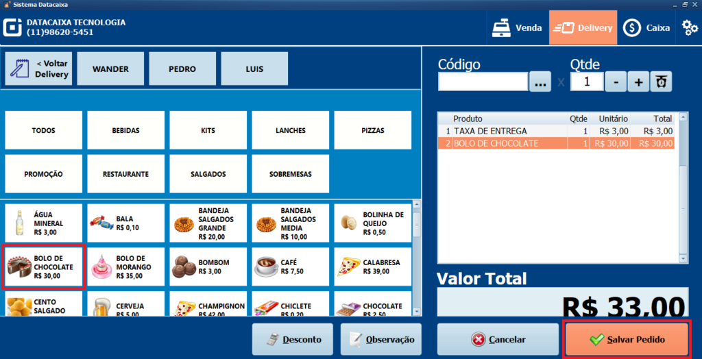 14- Selecione o produto e clique em Salvar Pedido.
