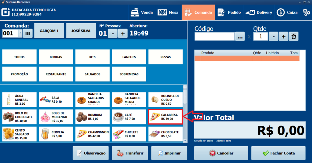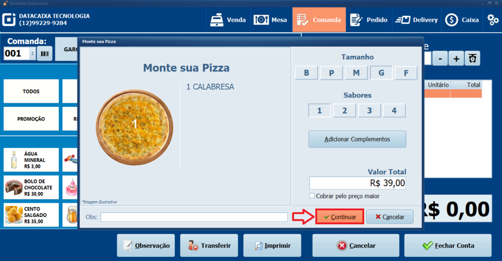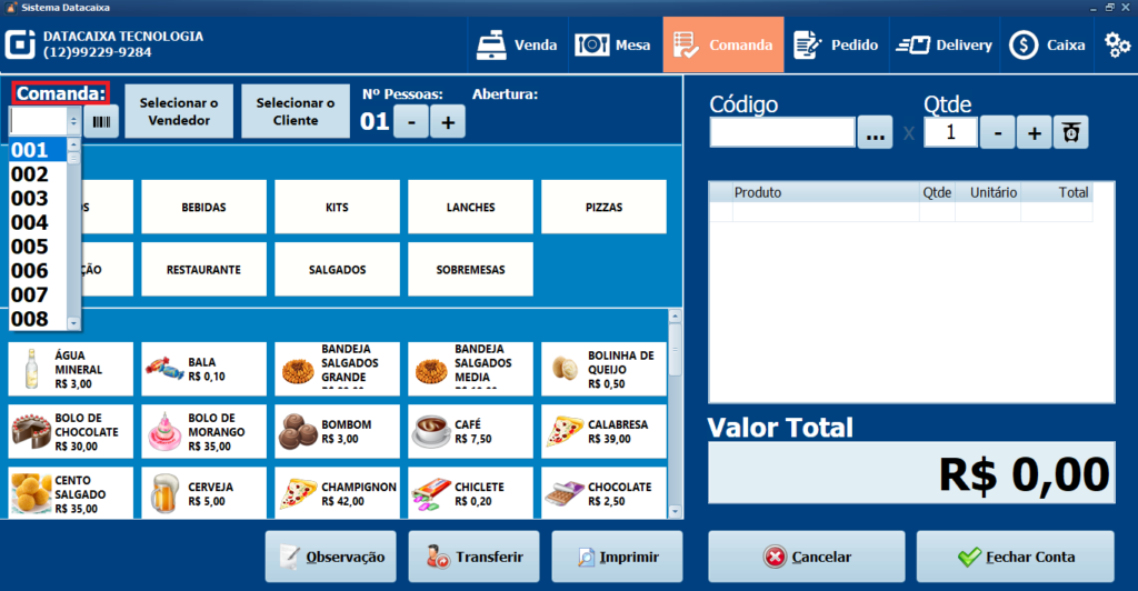 2- Clique em Comanda e selecione a Comanda desejada.