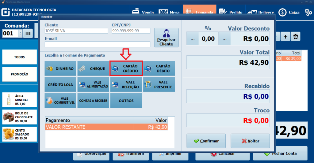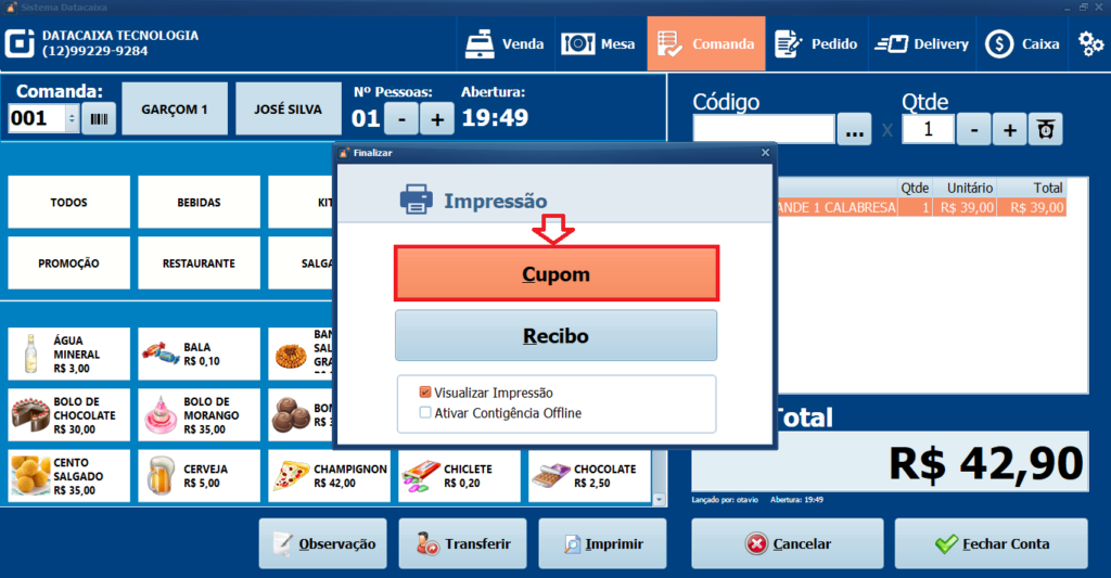 14– Escolha se a venda vai ser em Cupom Fiscal ou Recibo.
