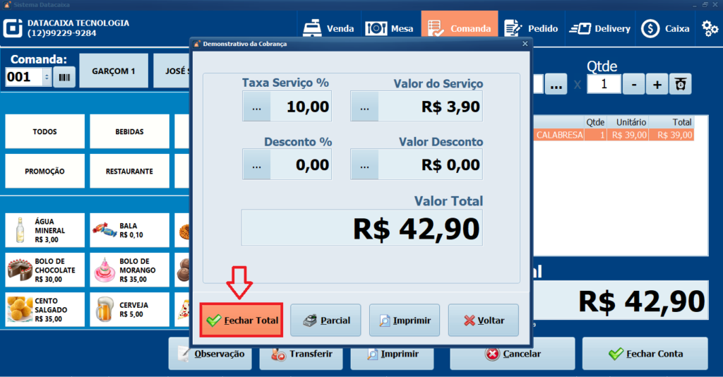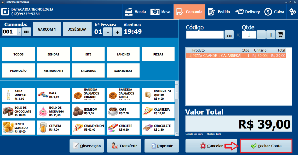 Pronto! Você realizou uma venda utilizando Comandas no Sistema.
