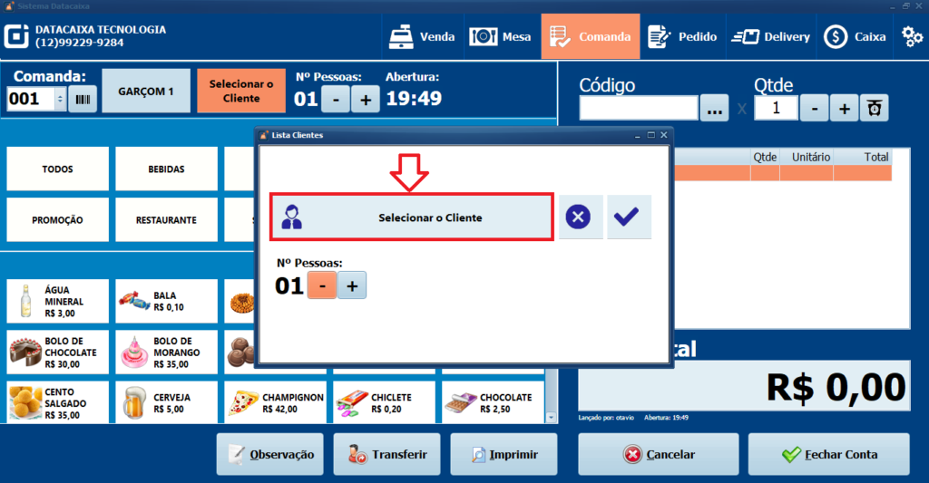 6- Informe o número de pessoas e clique em Selecionar o Cliente.