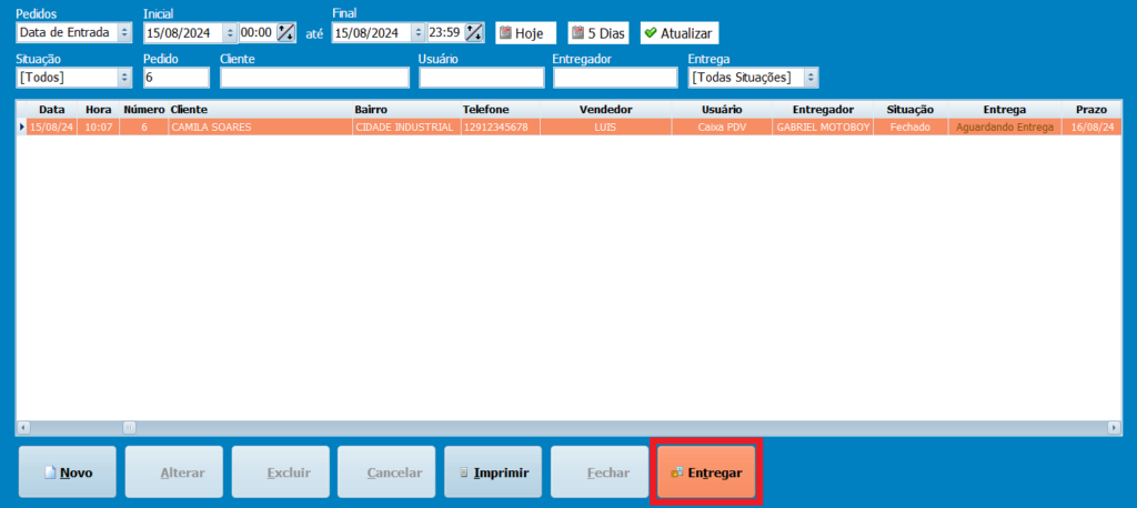 23- Tudo pronto! O pedido está Aguardando Entrega, clique em Entregar.