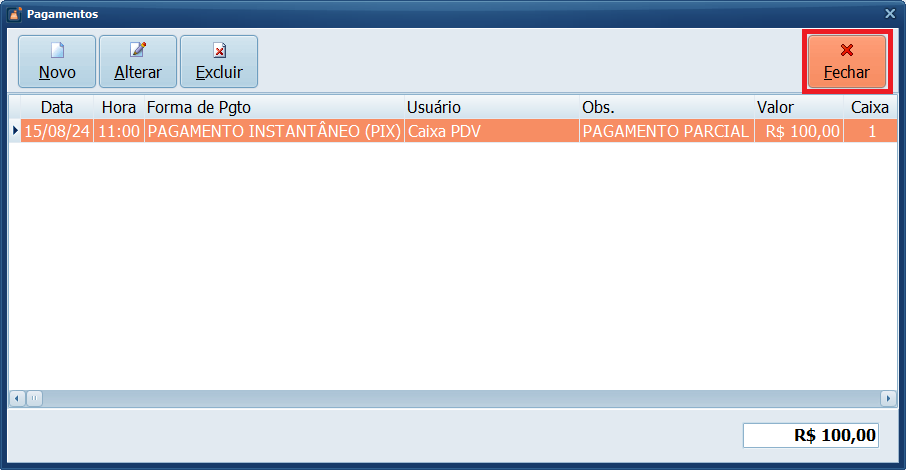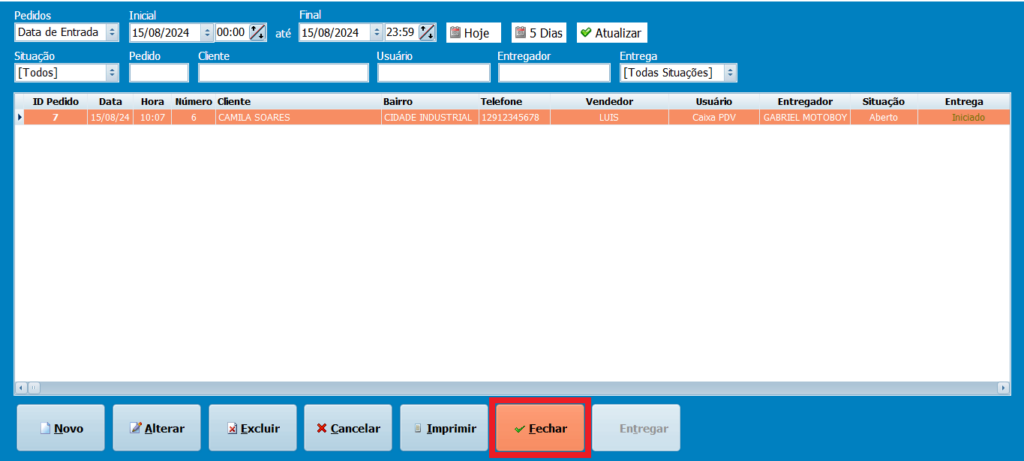18- Com o pedido pronto, clique em Fechar.