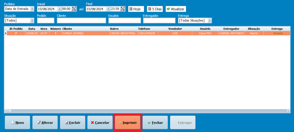 17- Caso necessário, clique em Imprimir para gerar um cupom com as informações do pedido para o cliente.