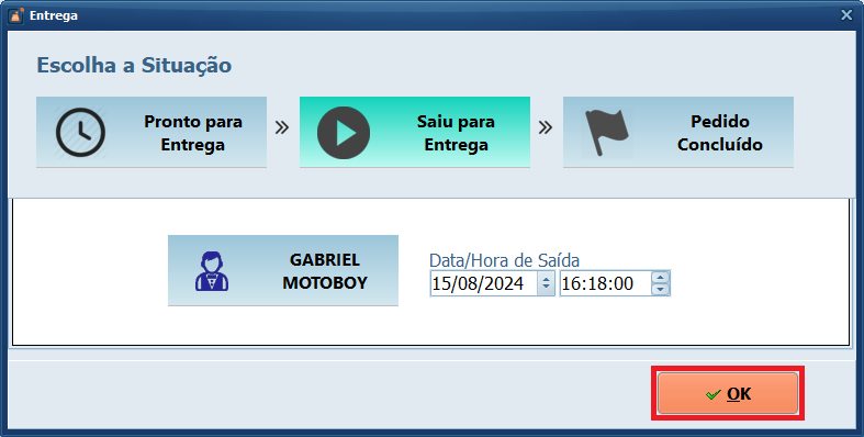 Atualize o horário da saída e depois clique em OK para atualizar o status.