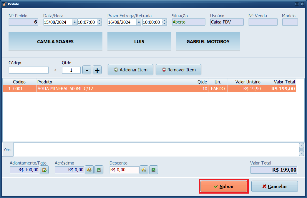 Pronto! Você realizou uma venda utilizando o módulo Pedido no Sistema PDV.