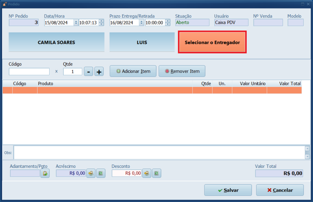 8- Esta etapa também é opcional. Se desejar, clique em Selecionar o Entregador.