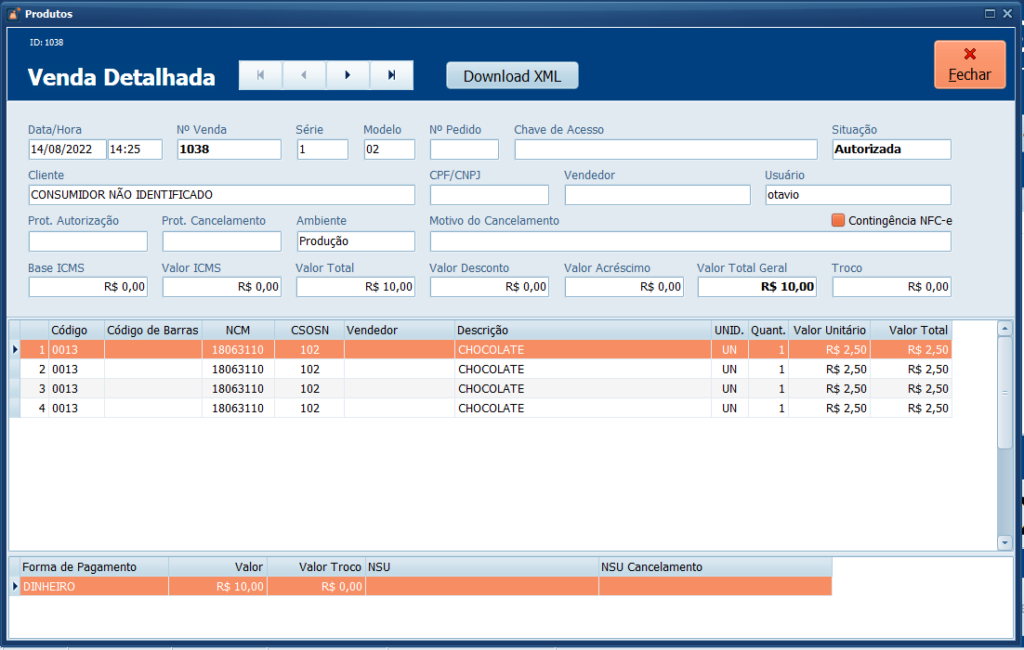 Pronto! Você abriu uma venda detalhada no Sistema.